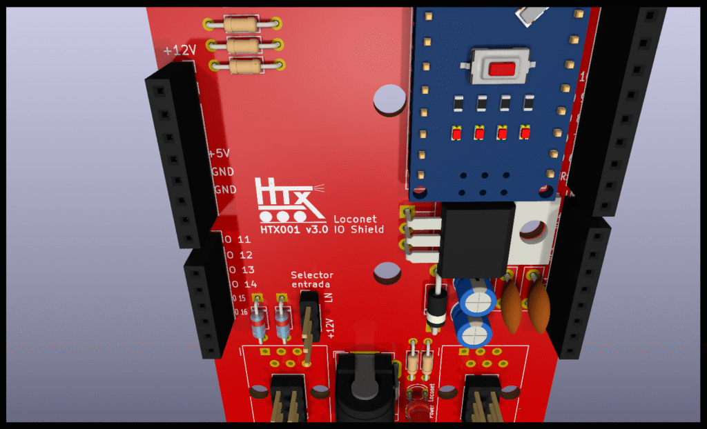 Es un rediseño de la famosa placa GCA50a de Peter Giling cargado con el software de Dani Guisado, pero adaptado al factor de forma de un arduino UNO ya que el resto de placas que ire presentando van a tener el mismo factor de forma e iran «pinchadas» encima de la HTX001 en función de si queremos un decodificador de servos, un decodificador de posición, o lo que queramos pincharle, siempre en formato UNO.